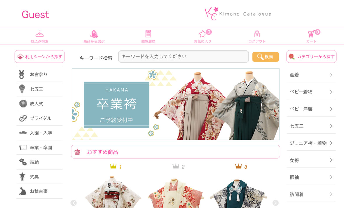 スマホで2500着以上から選べるキモノカタログでお気に入りが必ず見つかる。